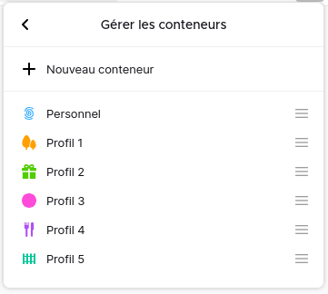 L'une des fonctionnalités les plus innovantes de Firefox reste ses conteneurs d'onglets. Cette fonction permet d'isoler différents contextes de navigation dans des "conteneurs" séparés, chacun avec ses propres cookies, sessions et données de connexion.